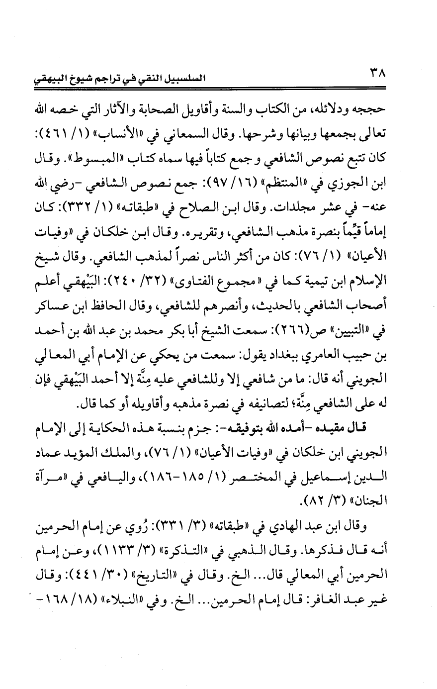 وقال ابن عبد الهادي في "طبقاته" (3/ 331): رُوي عن إمام الحرمين أنّه قال فذكرها. وقال الذهبي في "التذكرة" (3/ 1133)، وعن إمام الحرمين أبي المعالي قال ... الخ. وقال في "التاريخ" (30/ 441): وقال غير عبد الغافر: قال إمام الحرمين ... الخ. وفي "النُّبَلاء" (18/ 168 -