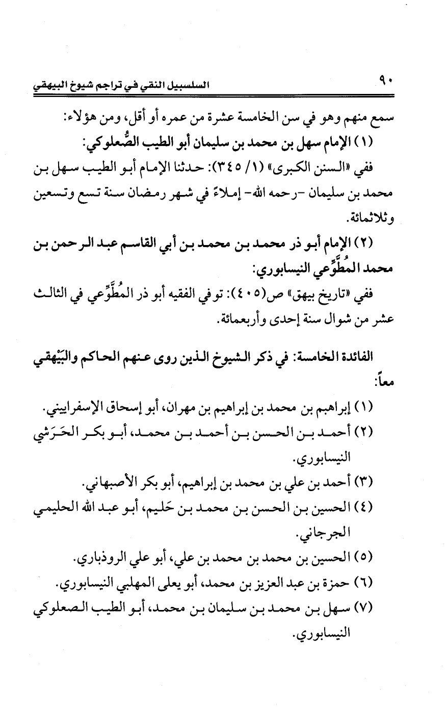 الفائدةُ الخامسة: في ذكر الشيوخ الذين روى عنهم الحاكم والبَيْهقي معًا: