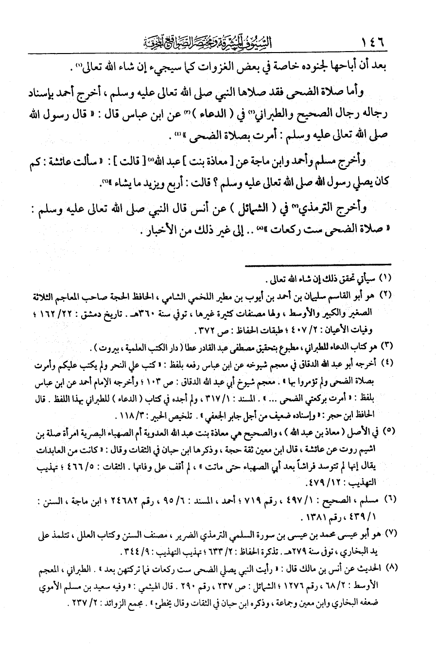 بعد أن أباحها لجنوده خاصة في بعض الغزوات كما سيجيء إن شاء الله تعالى. وأما صلاة الضحى فقد صلاها النبي - صلى الله عليه وسلم -. أخرج أحمد بإسناد رجاله رجال الصحيح والطبراني في الدعاء عن ابن عباس قال: قال رسول الله - صلى الله عليه وسلم -: أمرت بصلاة الضحى. وأخرج مسلم وأحمد وابن ماجه عن معاذة بنت عبد الله: سألت عائشة: كم كان يصلي رسول الله - صلى الله عليه وسلم - صلاة الضحى؟ قالت: أربع [ركعات] ويزيد ما يشاء. وأخرج الترمذي في الشمائل عن أنس قال النبي - صلى الله عليه وسلم -: "صلاة الضحى ست ركعات" إلى غير ذلك من الأخبار.
