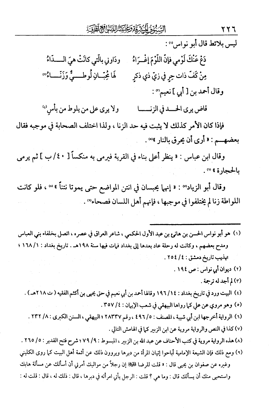 فإذا كان الأمر كذلك لا يثبت فيه حد الزنا. ولذا اختلف الصحابة في موجبه، فقال بعضهم: أرى أن يحرق بالنار. وقال ابن عباس: ينظر أعلى بناء في القرية فيرمى منه منكسا ثم يرمى بالحجارة. وقال [ابن الزبير]: إنهما يحبسان في أنتن المواضع حتى يموتا نتنا. فلو كانت اللواطة زنا لم يختلفوا في موجبها، فإنهم أهل اللسان فصحاء.