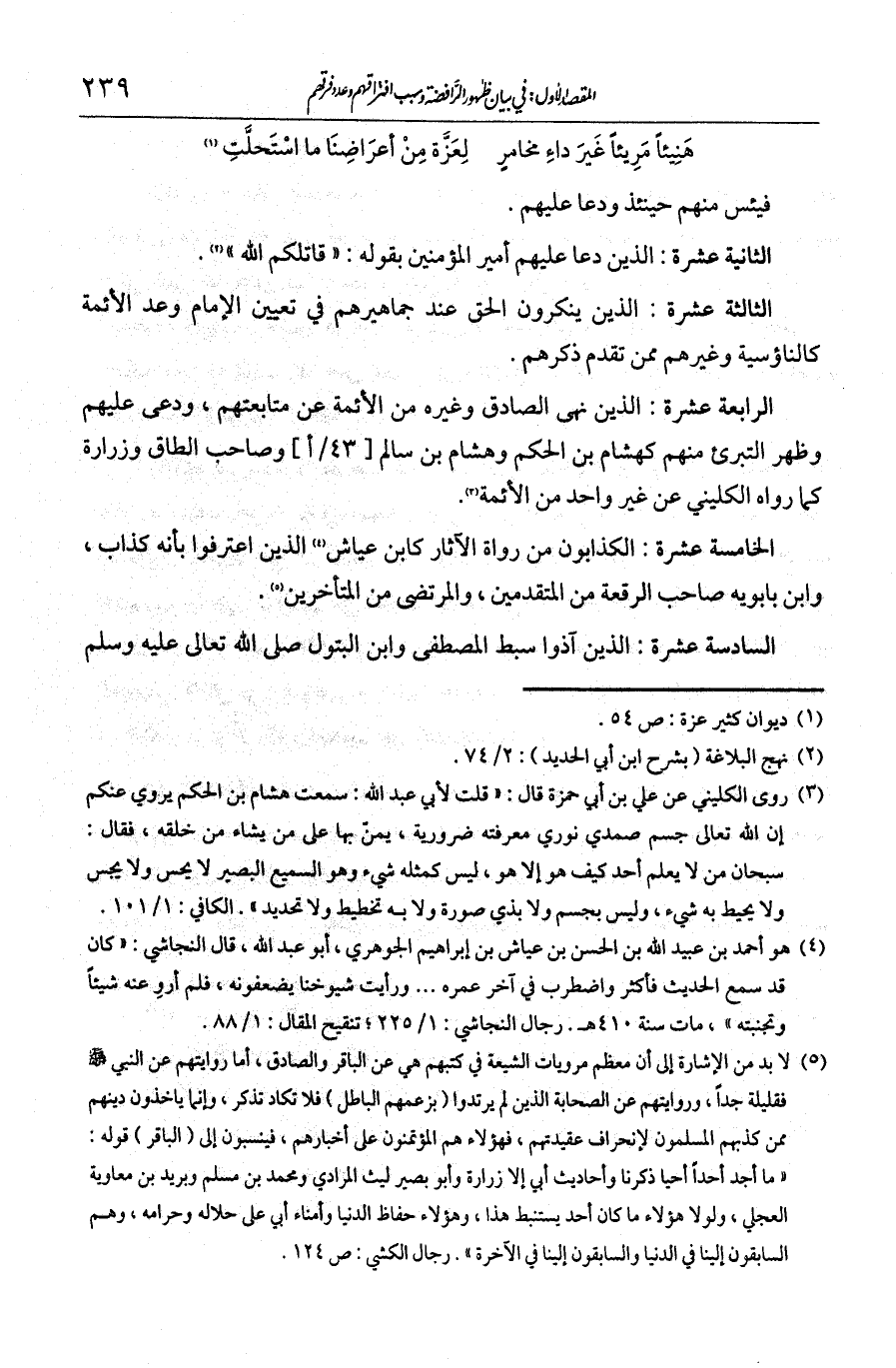 الخامسة عشرة: الكذابون من رواة الآثار، كابن عياش الذي اعترفوا بأنه كذاب، وابن بابويه صاحب الرقعة من المتقدمين، والمرتضى من المتأخرين.
