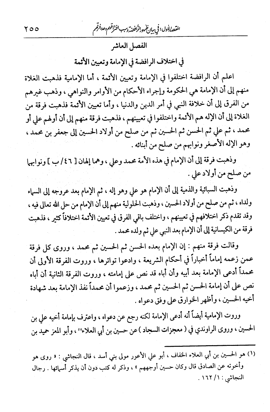 الفصل العاشر في بيان اختلاف الرافضة في الإمامة وتعيين الأئمة