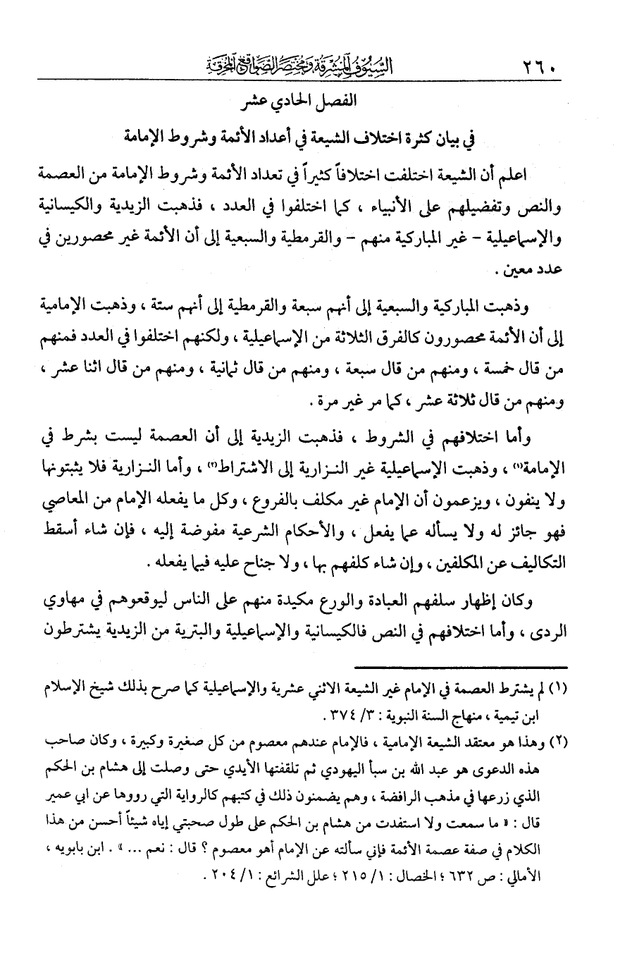 الفصل الحادي عشر في بيان كثرة اختلاف الشيعة في أعداد الأئمة وشروط الإمامة