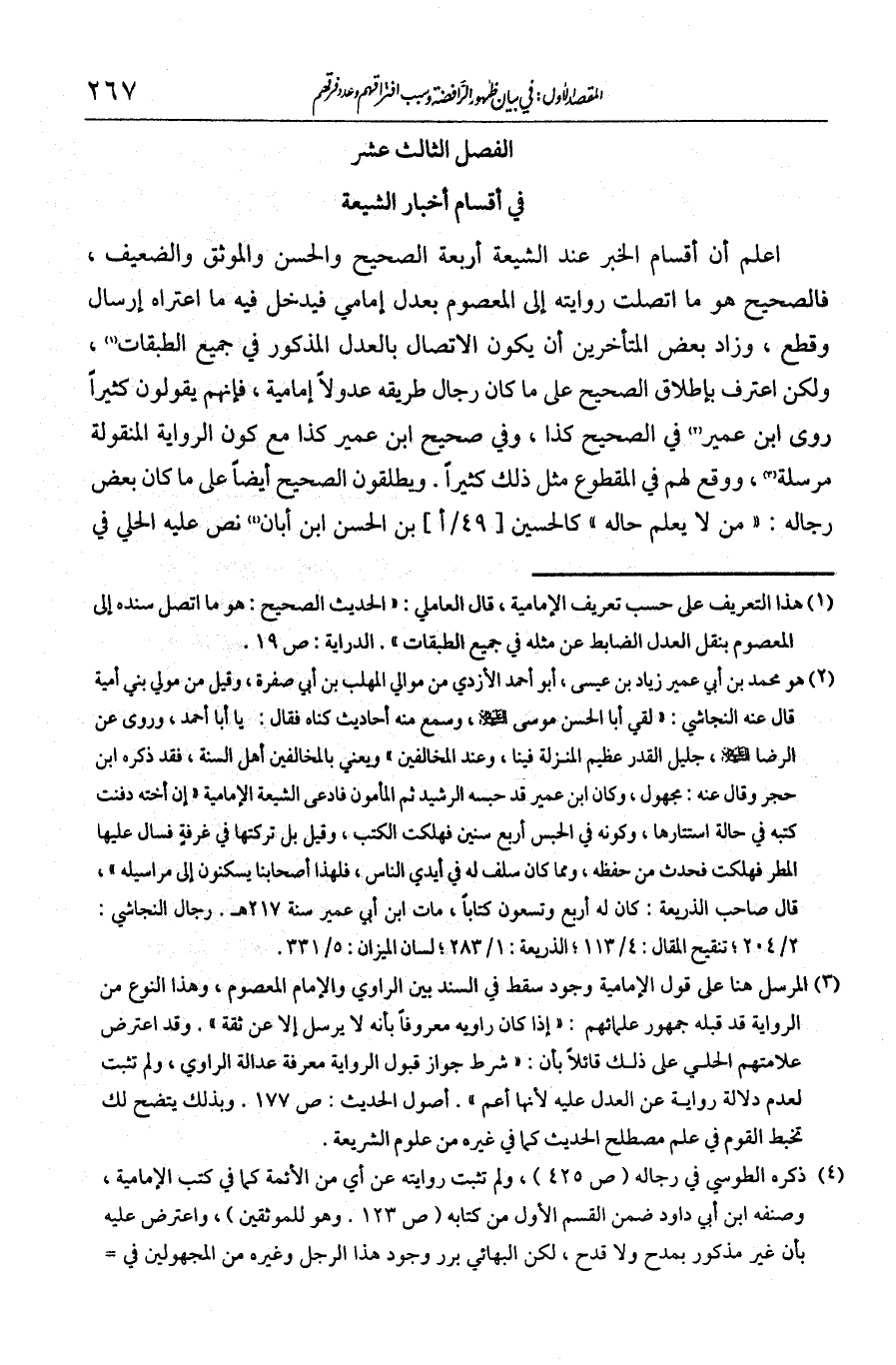 الفصل الثالث عشر في أقسام أخبار الشيعة