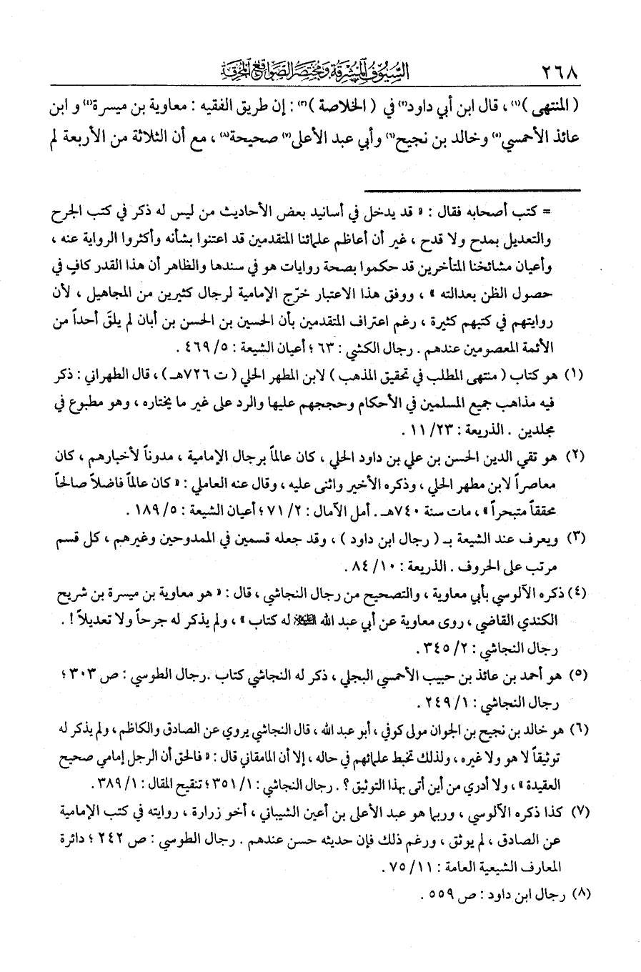 قال ابن أبي داود في الخلاصة: إن طريق الفقيه إلى معاوية بن ميسرة وإلى عابد الأخمسي وإلى خالد بن النجيح وإلى عبد الأعلى صحيحة. مع أن الثلاثة من الأربعة لم