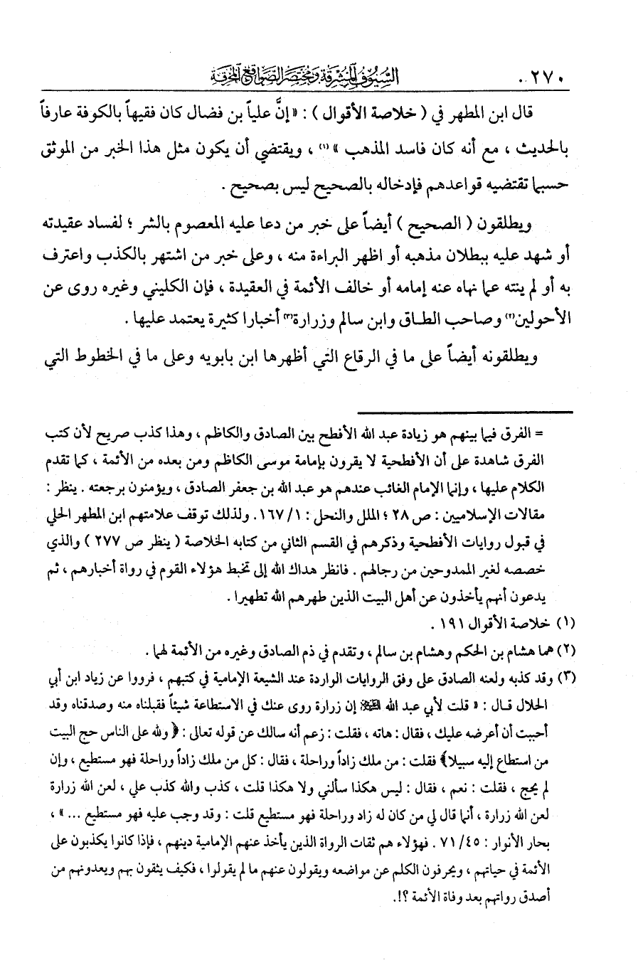 ويطلقون الصحيح أيضا على خبر من دعا عليه المعصوم بالشر لفساد عقيدته، أو شهد عليه ببطلان مذهبه، أو أظهر البراءة منه، وعلى خبر من اشتهر بالكذب واعترف به، أو لم ينته عما نهاه عنه إمامه، أو خالف الأئمة في العقيدة. فإن الكليني وغيره روى عن الأحولين وصاحب الطاق وابن سالم وزرارة أخبارا كثيرة يعتمد عليها.