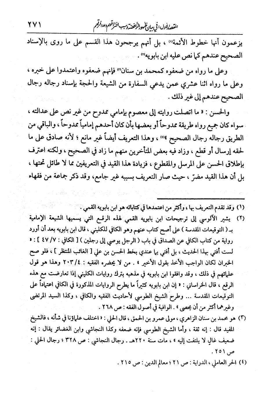 يزعمون أنها خطوط الأئمة؛ بل إنهم يرجحون هذا القسم على ما روي بالإسناد الصحيح عندهم، كما نص عليه ابن بابويه، وعلى ما رواه من ضعفوه، كمحمد بن سنان، فإنهم ضعفوه واعتمدوا على خبره، وعلى ما رواه اثنا عشري عمن يدعي السفارة بين الشيعة والحجة، بإسناد رجاله رجال الصحيح عندهم. إلى غير ذلك.