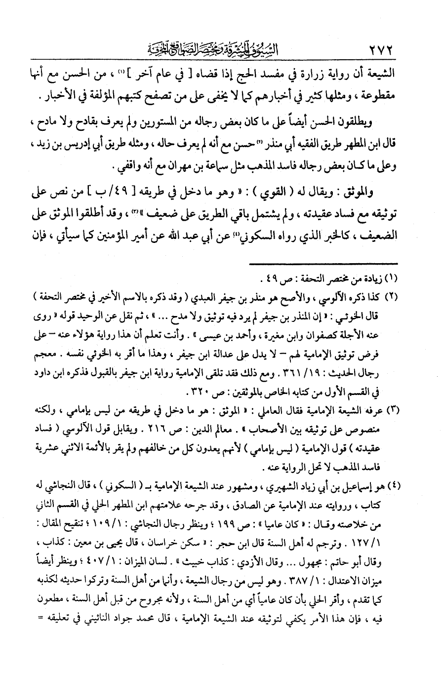 الشيعة أن رواية زرارة في مفسد الحج إذا قضاه من الحسن، مع أنها مقطوعة. ومثلها كثير في أخبارهم كما لا يخفى على من تصفح كتبهم المؤلفة في الأخبار.