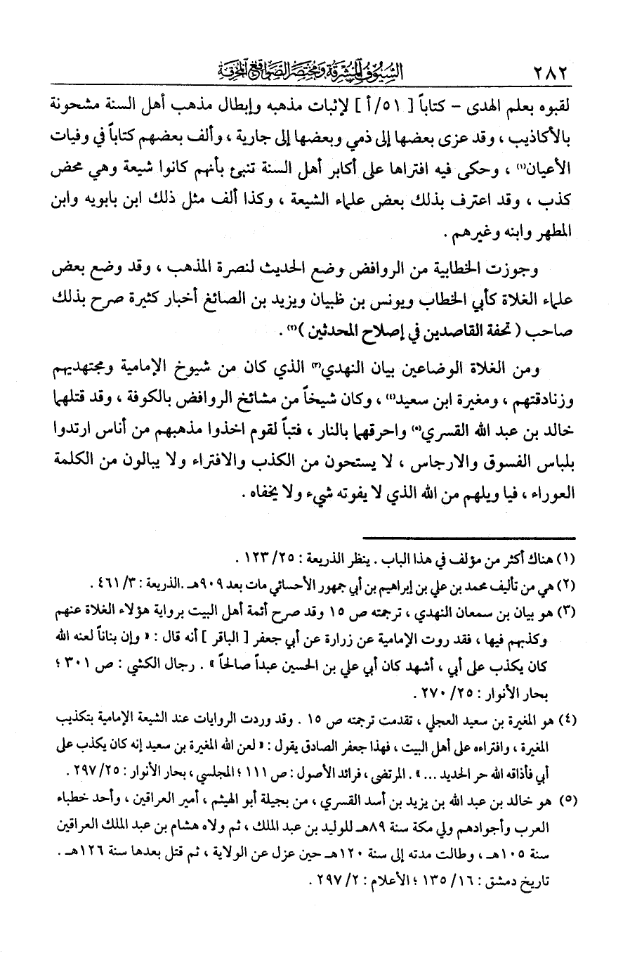 لقبوه بعلم الهدى كتابا لإثبات مذهبه وإبطال مذهب أهل السنة، مشحونة بالأكاذيب؛ وقد عزا بعضها إلى ذمي وبعضها إلى جارية. وألف بعضهم كتابا في وفيات الأعيان وحكى فيه حكايات افتراها على أكابر أهل السنة تنبئ بأنهم كانوا شيعة، وهي محض كذب، وقد اعترف بذلك بعض علماء الشيعة. وكذا ألف مثل ذلك ابن بابويه وابن المطهر وابنه وغيرهم.