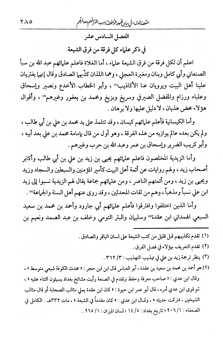 الفصل السادس عشر في ذكر علماء كل فرقة من فرق الشيعة