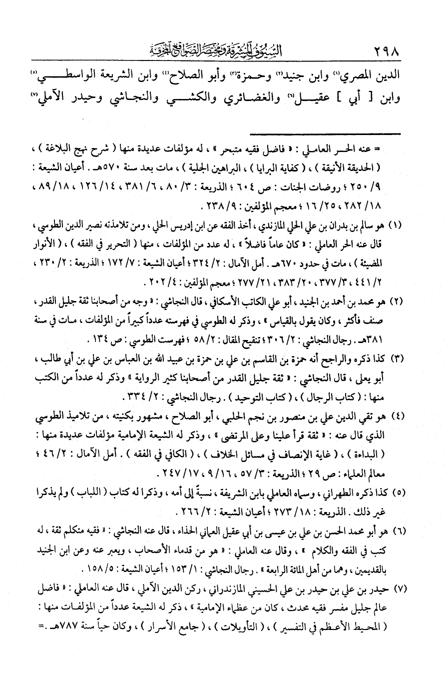 الدين المصري وابن جنيد وحمزة وأبو الصلاح وابن الشريعة الواسطي وابن [أبي] عقيل والغضائري والكشي والنجاشي وحيدر الآملي