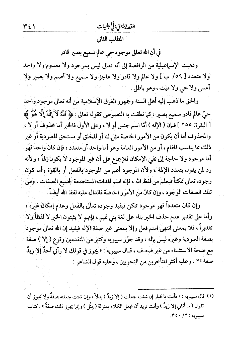 المطلب الثاني في أن الله تعالى موجود حي عالم سميع بصير قادر