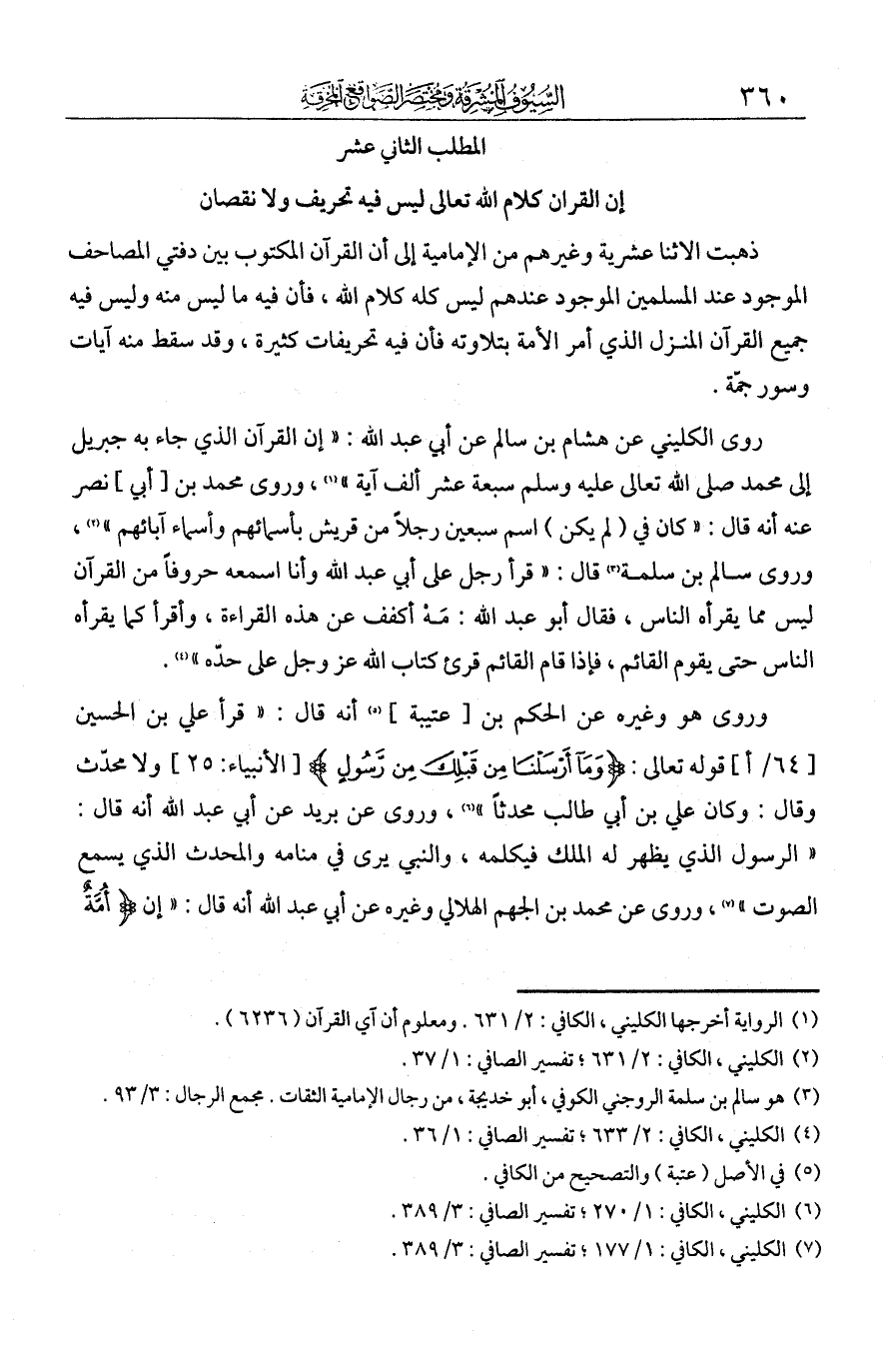 المطلب الثاني عشر أن القرآن كلام الله تعالى ليس فيه تحريف ولا نقصان
