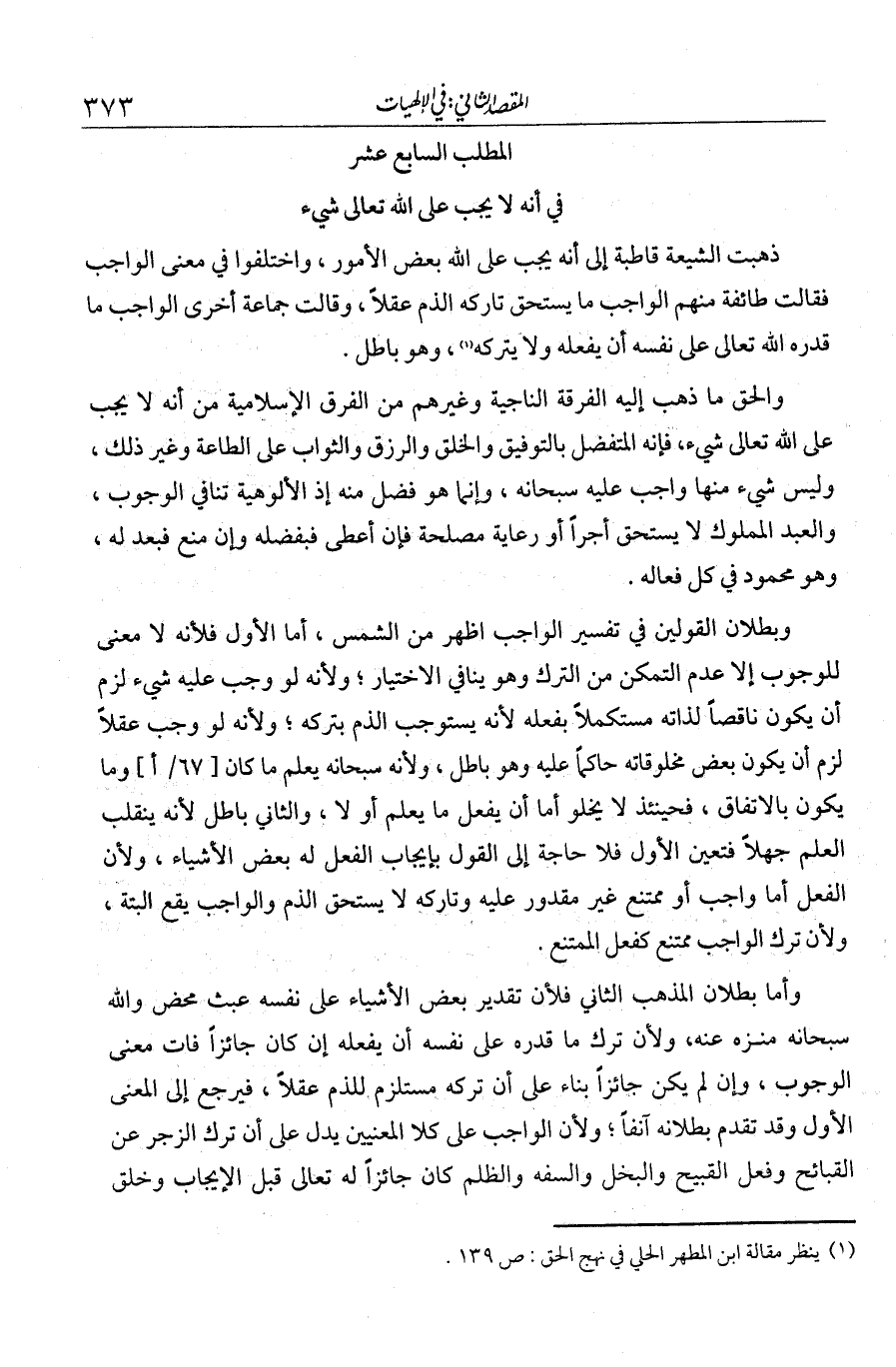 المطلب السابع عشر في أنه لا يجب على الله تعالى شيء