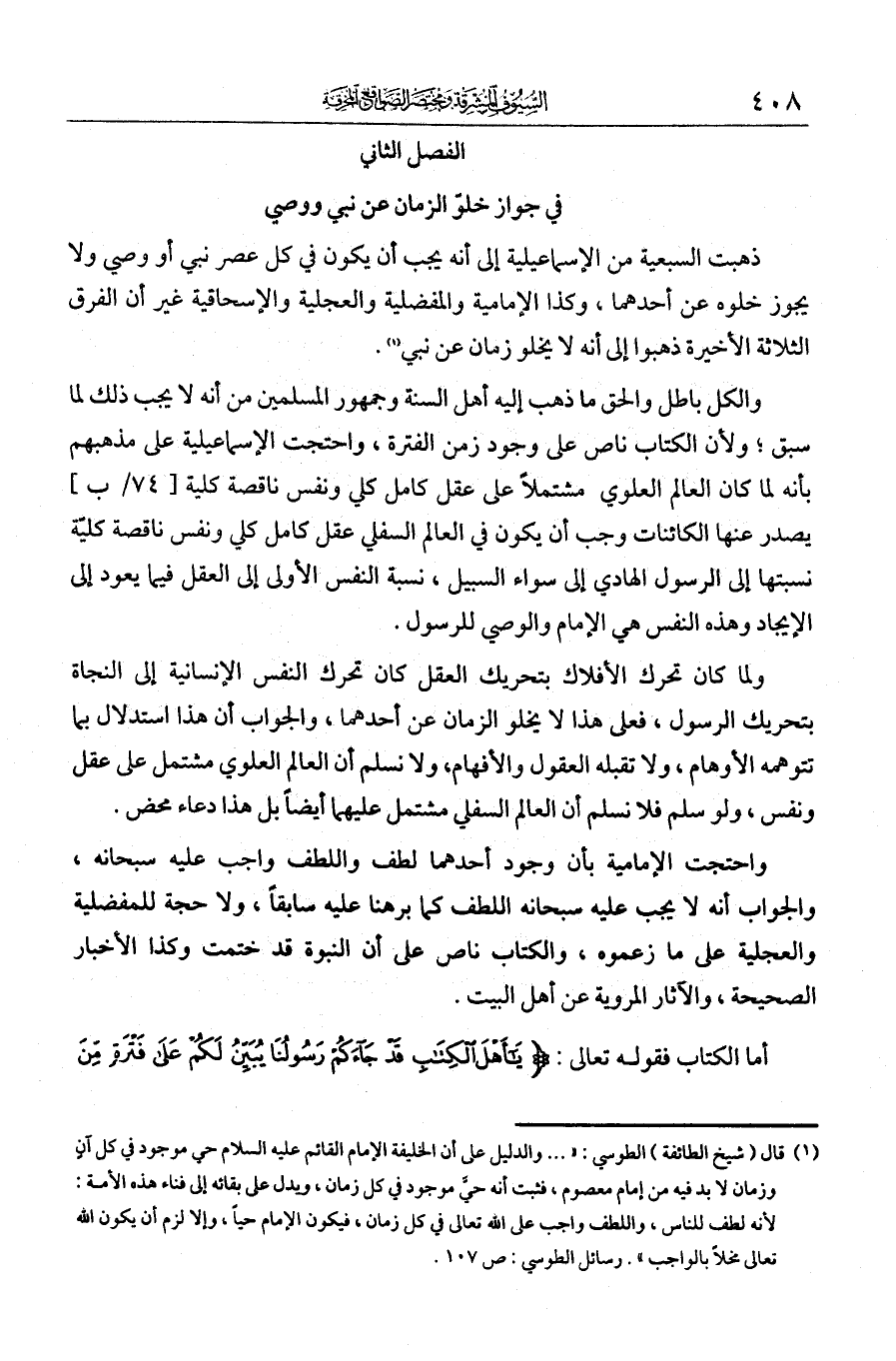 الفصل الثاني في جواز خلو الزمان عن نبي ووصي