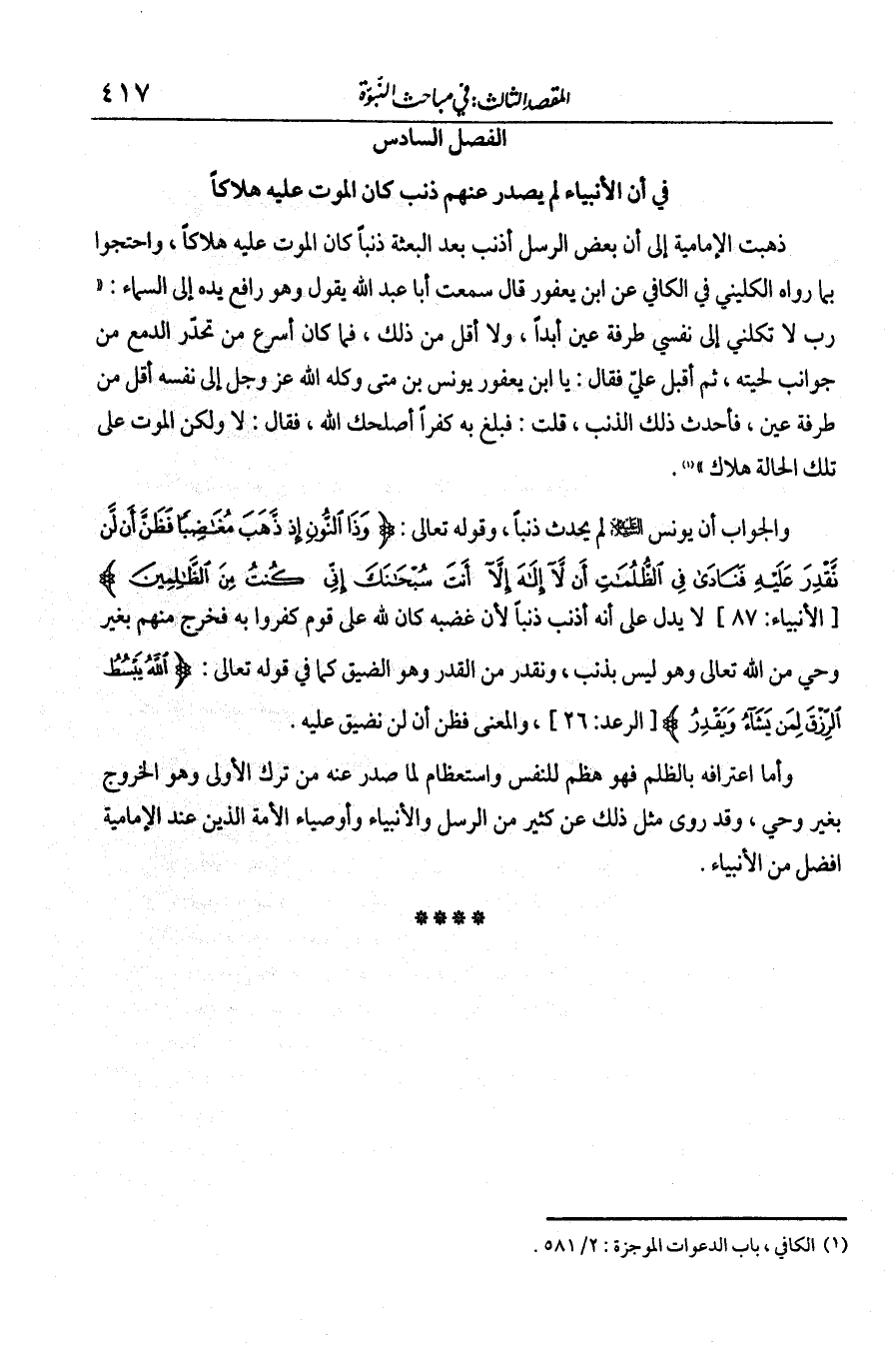 الفصل السادس في أن الأنبياء لم يصدر عنهم ذنب كان الموت عليه هلاكا