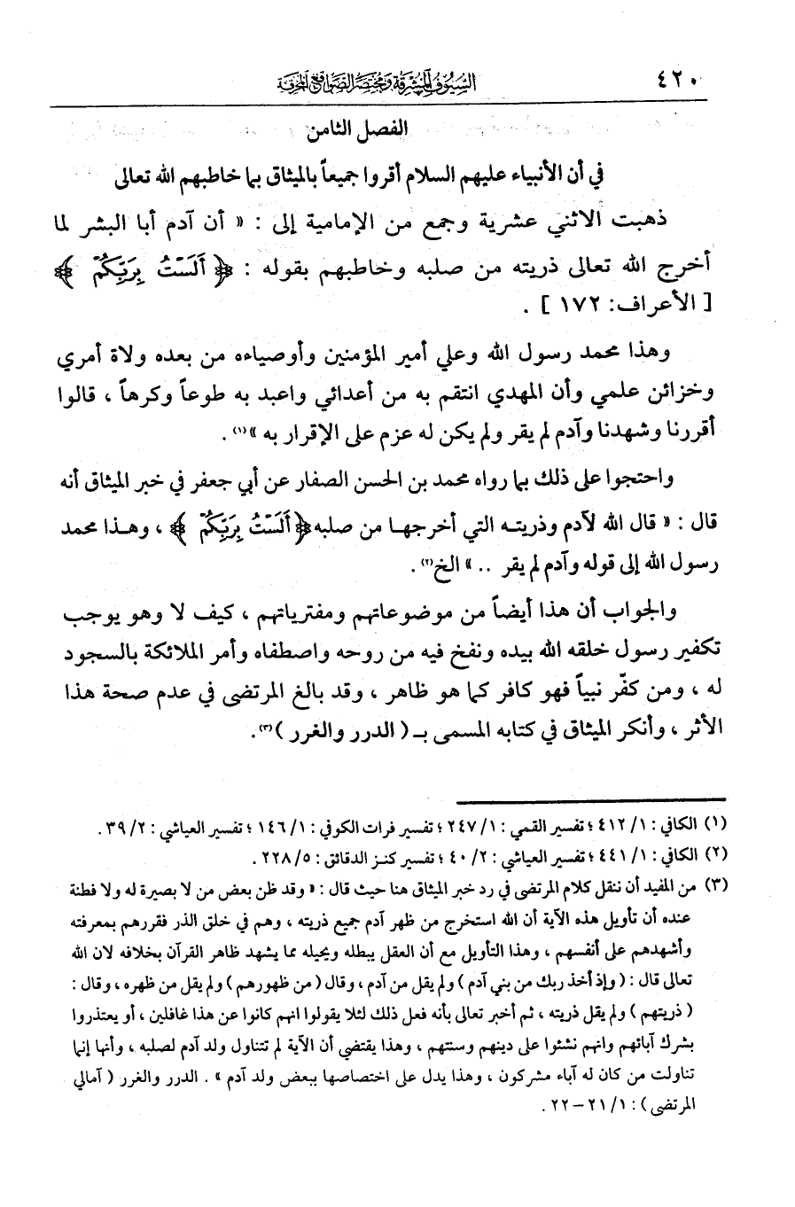 الفصل الثامن في أن الأنبياء عليهم السلام أقروا جميعا يوم الميثاق بما خاطبهم الله تعالى