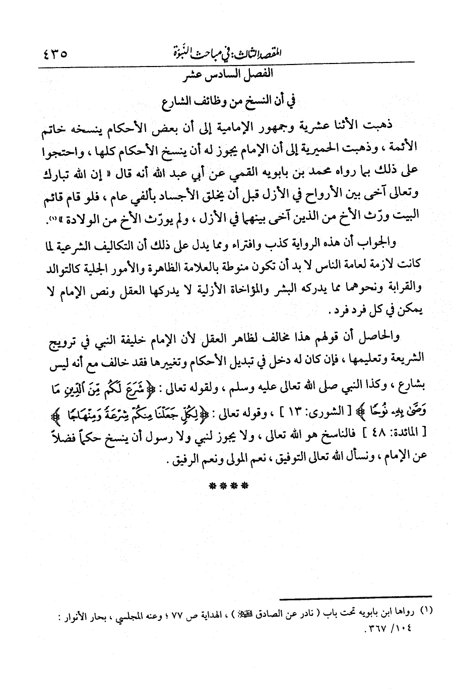 الفصل السادس عشر في أن النسخ من وظائف الشارع