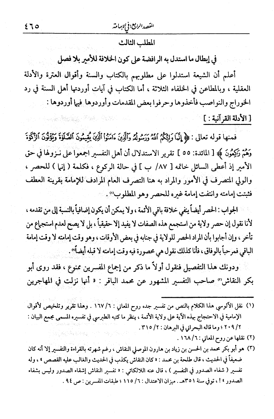 المطلب الثالث في إبطال ما استدل به الرافضة على كون الخلافة للأمير بلا فصل