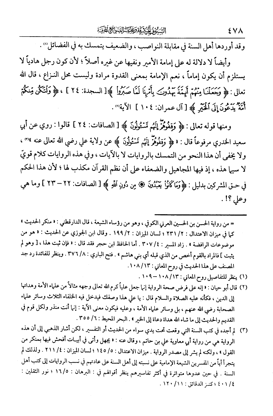 ولا يخفى أن نحو هذا النحو من التمسك بالروايات لا بالآيات، وفي هذه الروايات كلام قوي لا سيما هذه إذ فيها المجاهيل والضعفاء. على أن نظم القرآن مكذب لها، لأن هذا الحكم في حق المشتركين بدليل {وما كانوا يعبدون * من دون الله}. وما هي وعلي؟