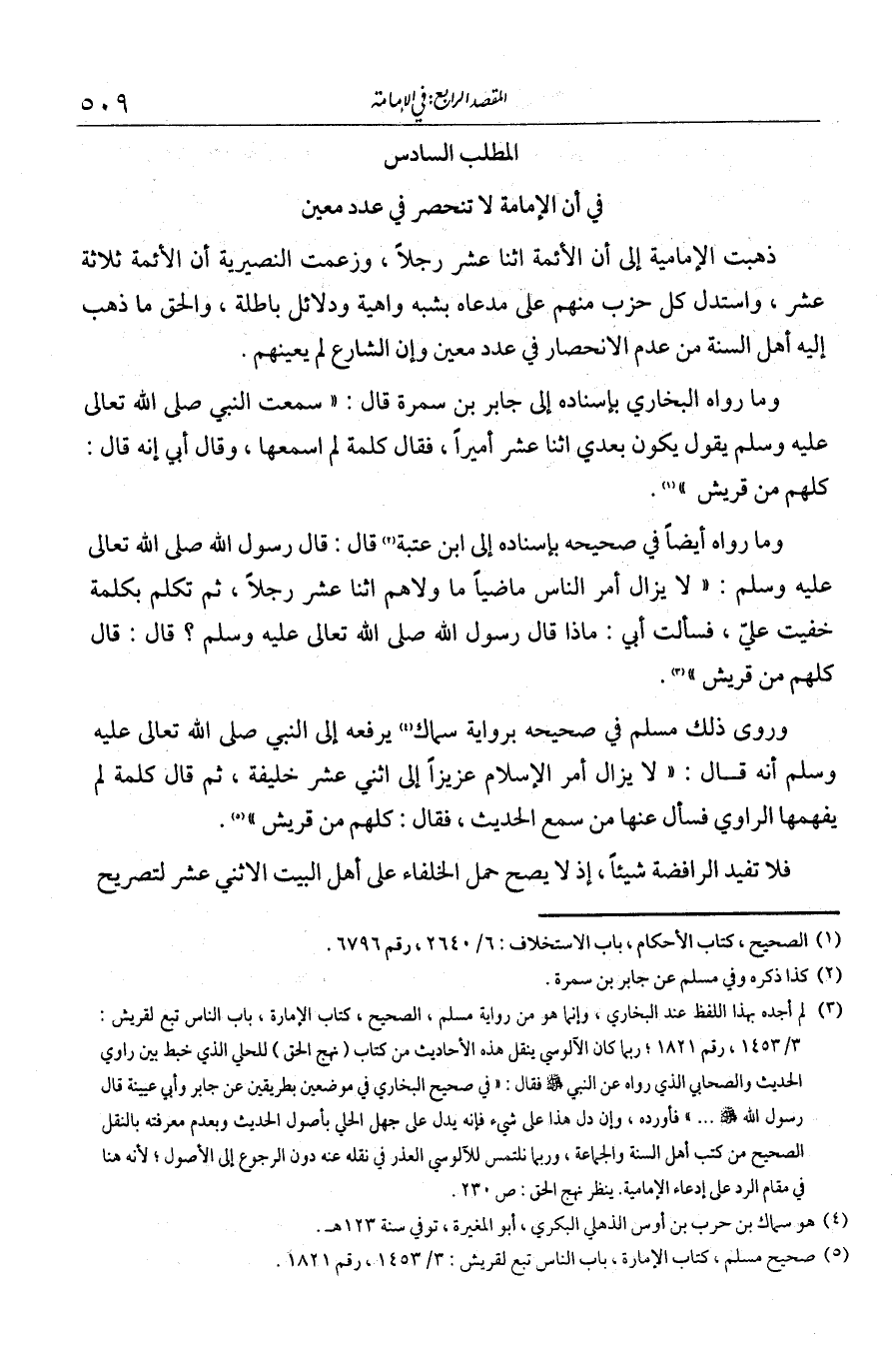 المطلب السادس في أن الإمامة لا تنحصر في عدد معين