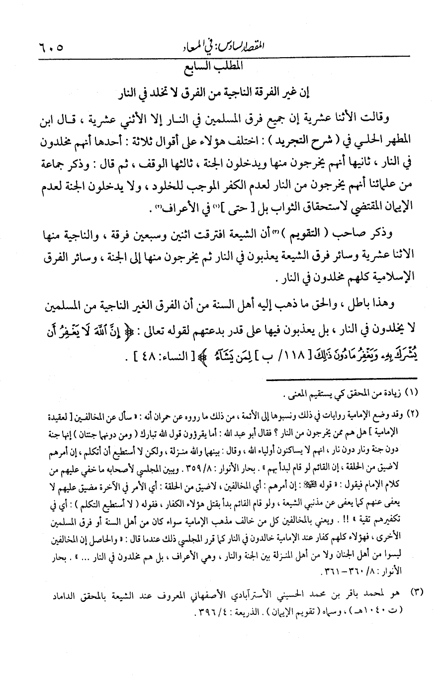 المطلب السابع أن غير الفرقة الناجية من الفرق لا تخلد في النار