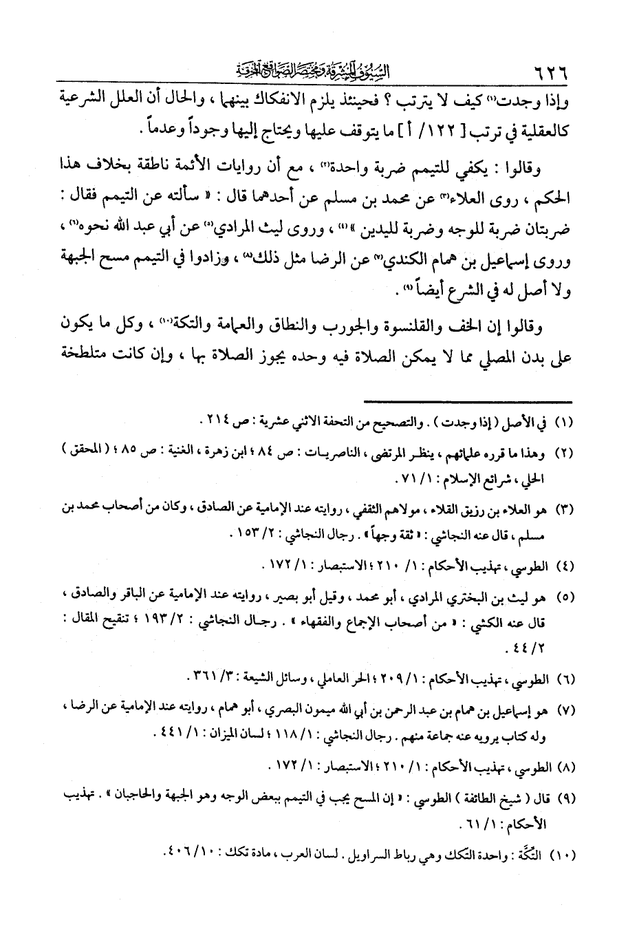 وقالوا: يكفي للتيمم ضربة واحدة، مع أن روايات الأئمة ناطقة بخلاف هذا الحكم. روى العلاء عن محمد بن مسلم عن أحدهما قال: «سألته عن التيمم فقال: ضربتان ضربة للوجه وضربة لليدين». وروى ليث المرادي عن أبي عبد الله نحوه. وروى إسماعيل بن همام الكندي عن الرضا مثل ذلك. وزادوا في التيمم مسح الجبهة، ولا أصل له في الشرع أيضا.