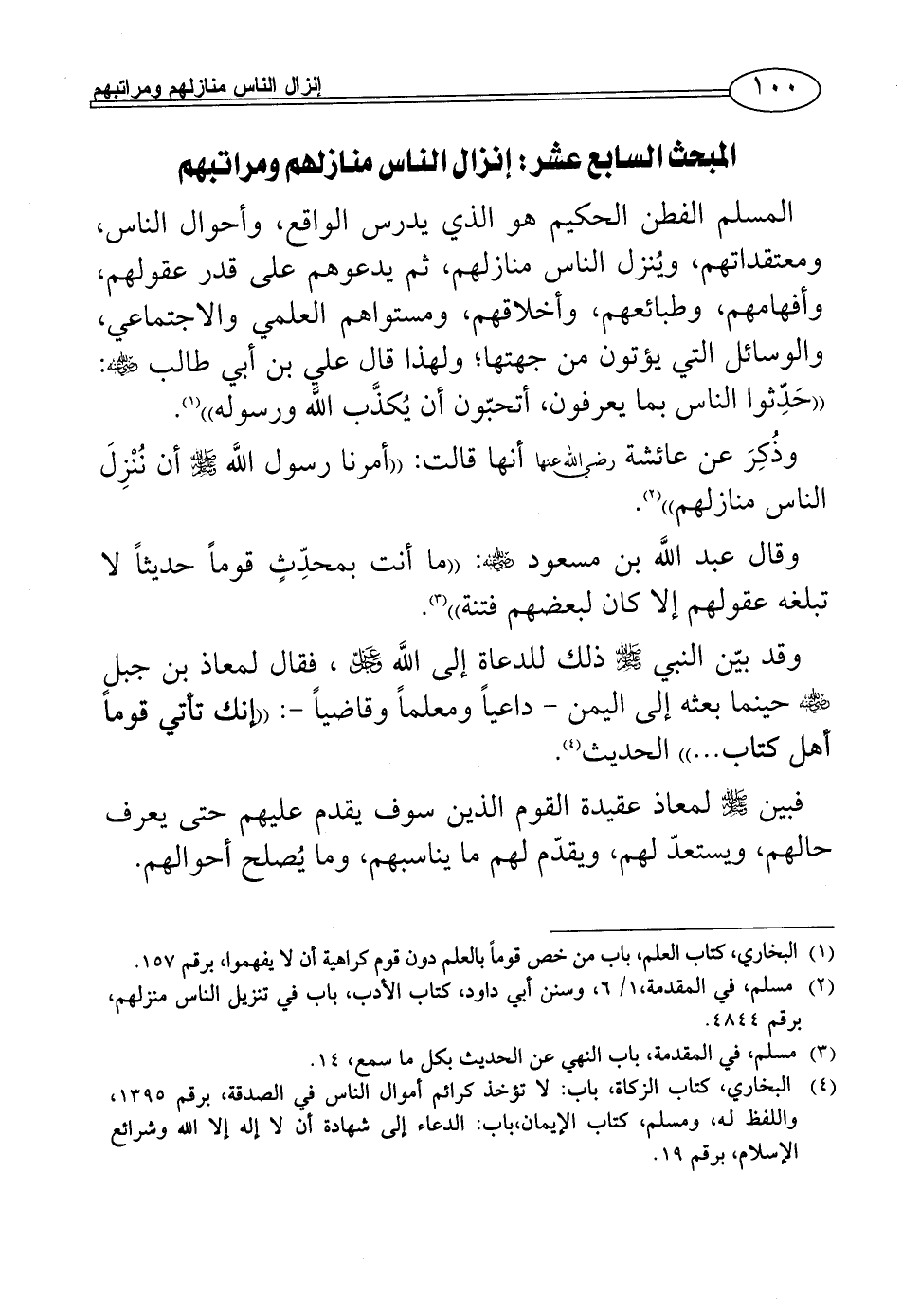 المبحث السابع عشر: إنزال الناس منازلهم ومراتبهم