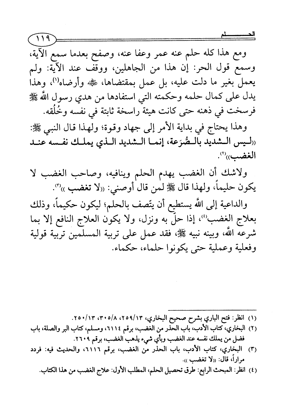 (¬4) انظر: المبحث الرابع: طرق تحصيل الحلم، المطلب الأول: علاج الغضب من هذا الكتاب.