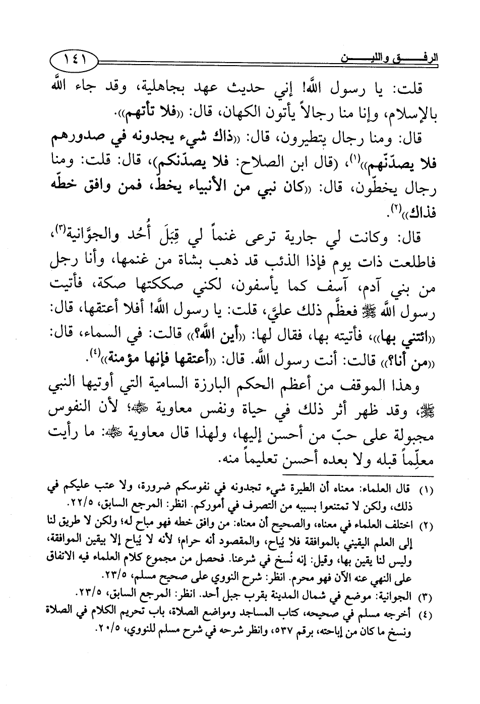 (¬4) أخرجه مسلم في صحيحه، كتاب المساجد ومواضع الصلاة، باب تحريم الكلام في الصلاة ونسخ ما كان من إباحته، برقم 537، وانظر شرحه في شرح مسلم للنووي، 5/ 20.
