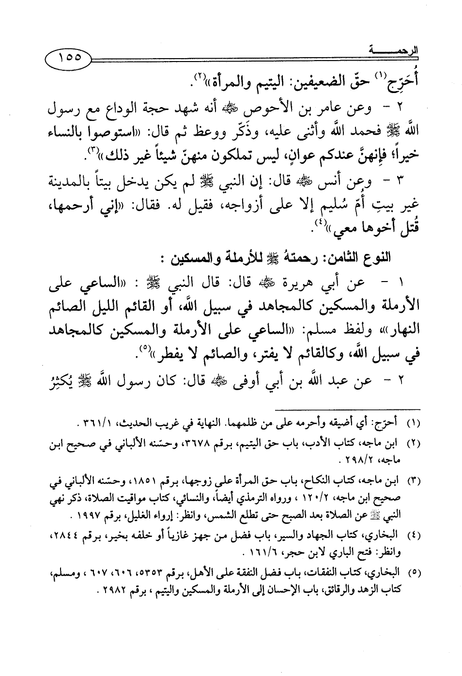 (¬5) البخاري، كتاب النفقات، باب فضل النفقة على الأهل، برقم 5353، 606، 607، ومسلم، كتاب الزهد والرقائق، باب الإحسان إلى الأرملة والمسكين واليتيم، برقم 2982.
