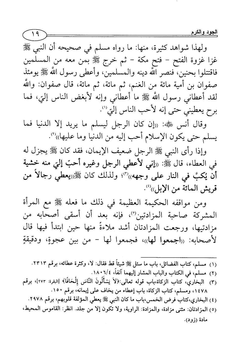 (¬1) مسلم، كتاب الفضائل، باب ما سئل - صلى الله عليه وسلم - شيئاً قط فقال: لا، وكثرة عطائه، برقم 2313.