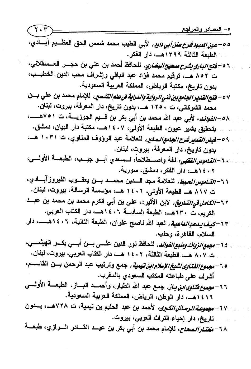 58 - الفوائد، لأبي عبد الله محمد بن أبي بكر بن قيم الجوزية، ت 751هـ، بتحقيق بشير عيون، الطبعة الأولى، 1407هـ، مكتبة دار البيان، دمشق.