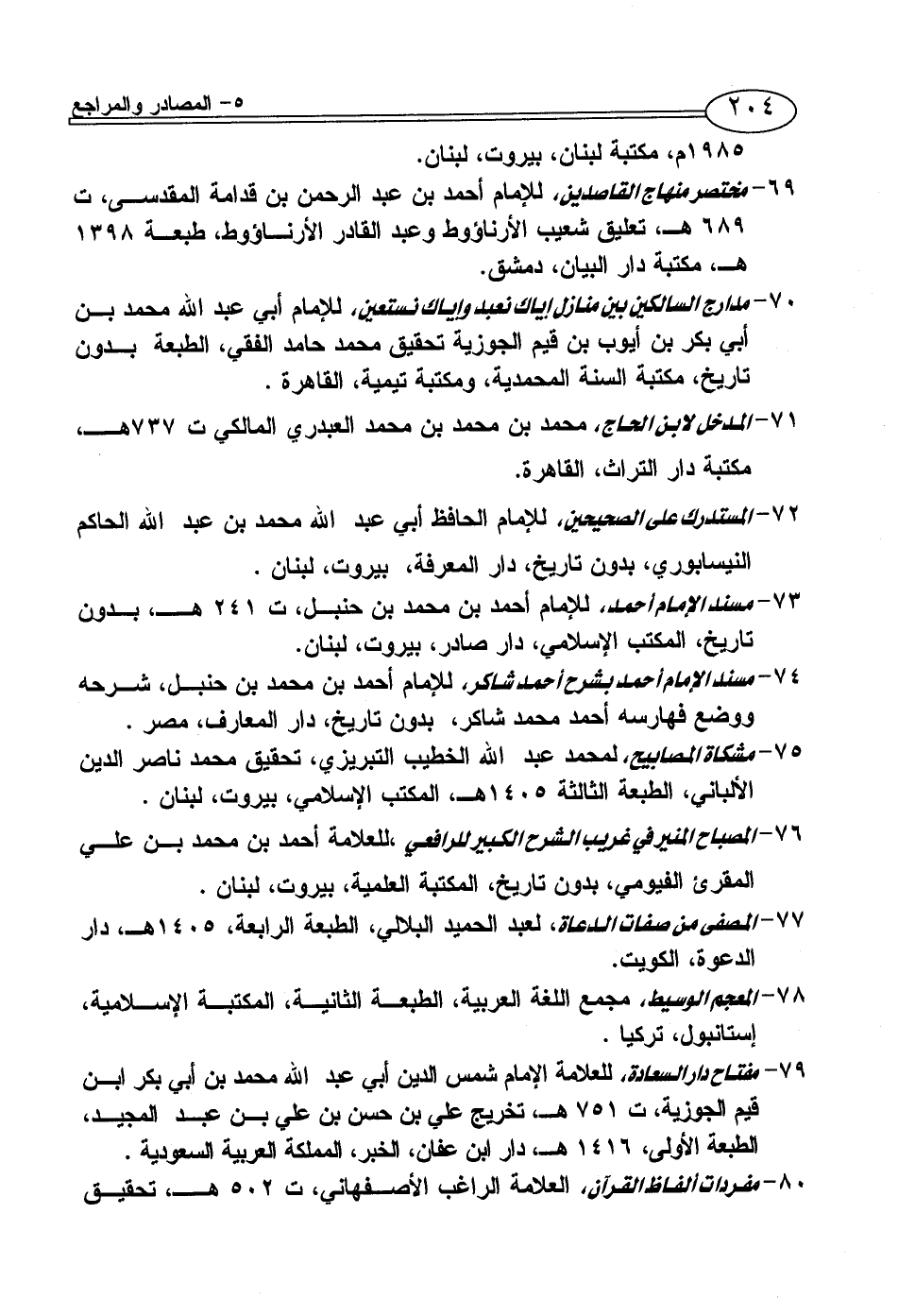 69 - مختصر منهاج القاصدين، للإمام أحمد بن عبد الرحمن بن قدامة المقدسى، ت 689 هـ، تعليق شعيب الأرناؤوط وعبد القادر الأرناؤوط، طبعة 1398 هـ، مكتبة دار البيان، دمشق.