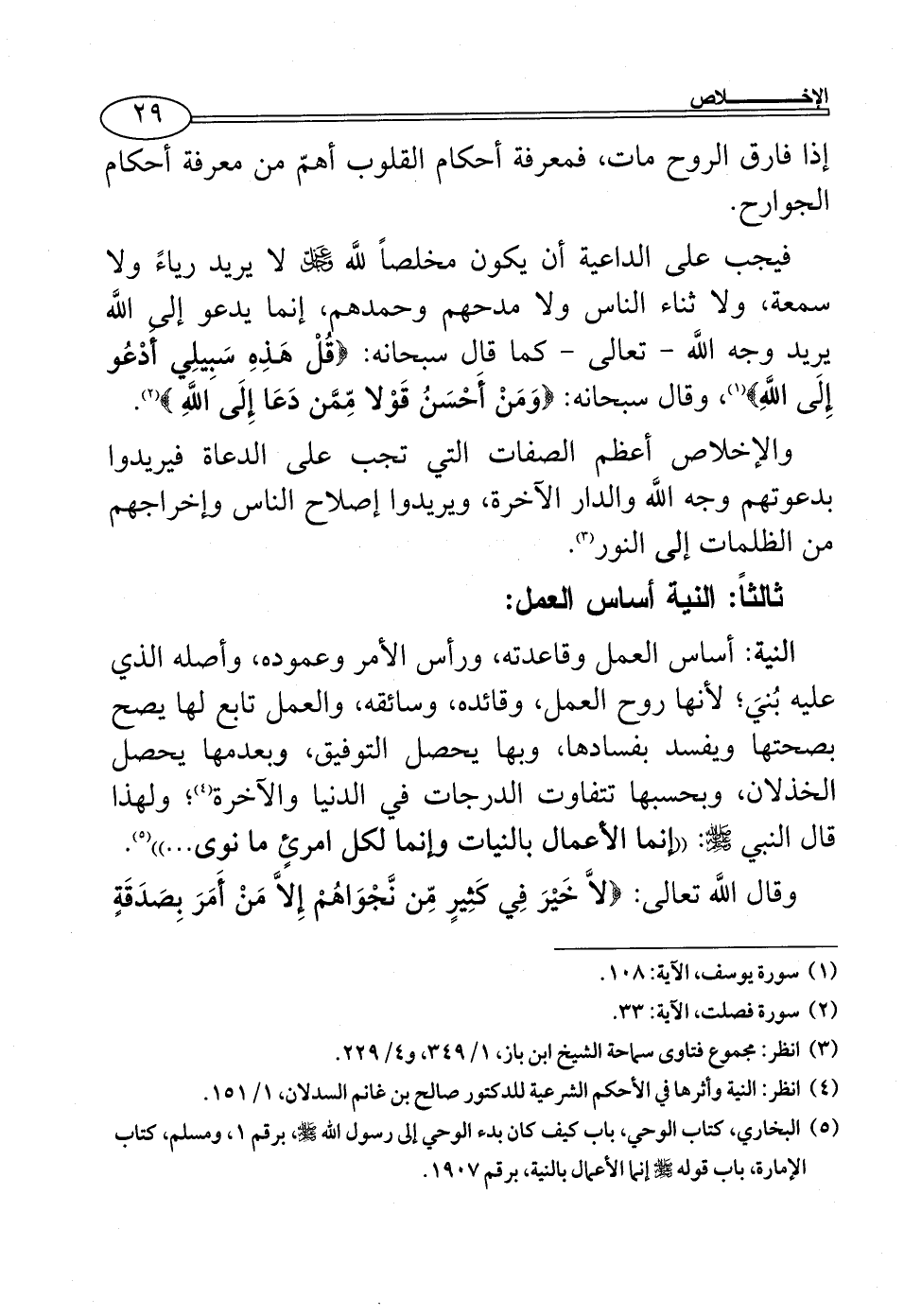 والإخلاص أعظم الصفات التي تجب على الدعاة فيريدوا بدعوتهم وجه اللَّه والدار الآخرة، ويريدوا إصلاح الناس وإخراجهم من الظلمات إلى النور (¬3).