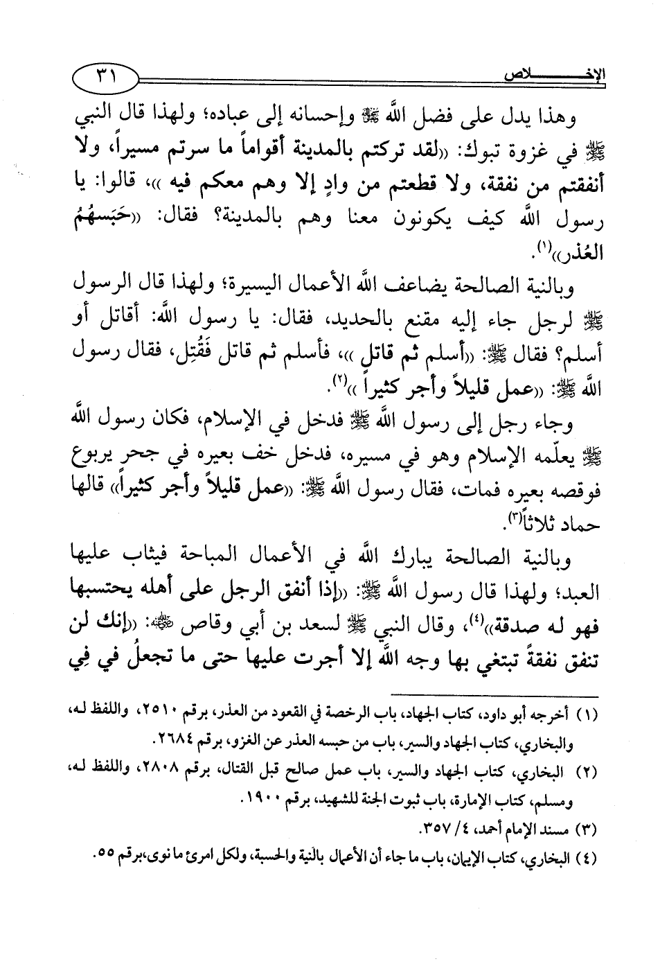 (¬4) البخاري، كتاب الإيمان، باب ما جاء أن الأعمال بالنية والحسبة، ولكل امرئ ما نوى، برقم 55.