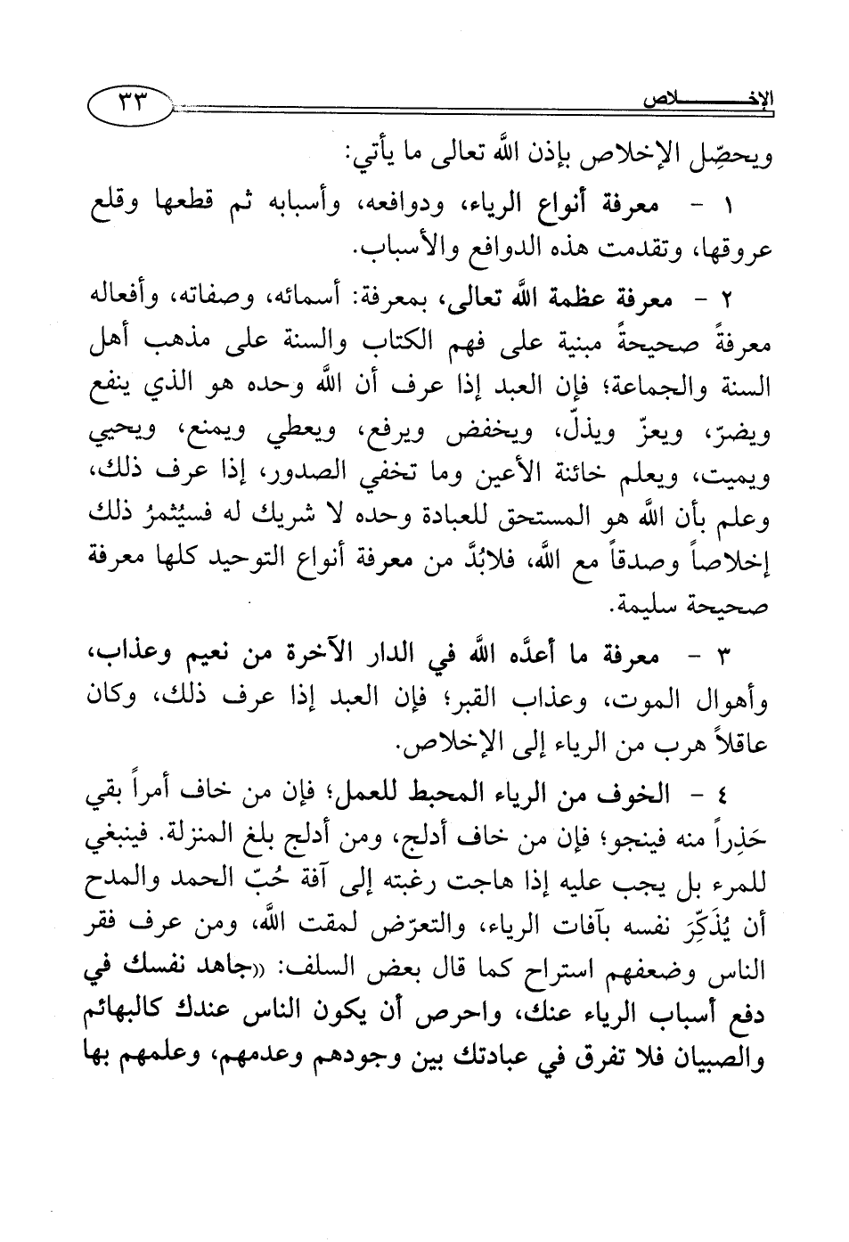 3 - معرفة ما أعدَّه اللَّه في الدار الآخرة من نعيم وعذاب، وأهوال الموت، وعذاب القبر؛ فإن العبد إذا عرف ذلك، وكان عاقلاً هرب من الرياء إلى الإخلاص.