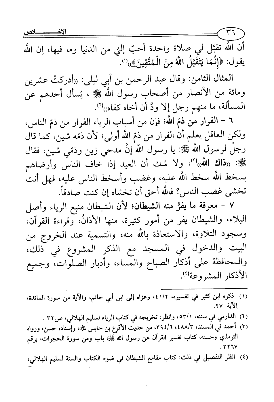 (¬4) انظر التفصيل في ذلك: كتاب مقامع الشيطان في ضوء الكتاب والسنة لسليم الهلالي، وهو مهم جداً، والإخلاص لحسين العوائشة، ص57 - 63.
