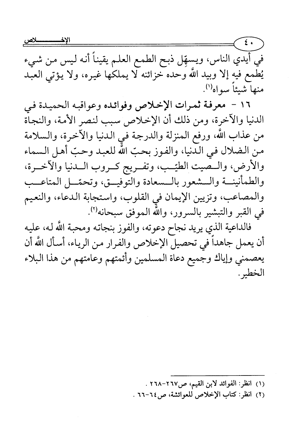 (¬2) انظر: كتاب الإخلاص للعوائشة، ص64 - 66.