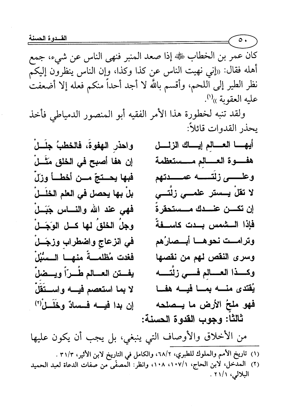 ولقد تنبه لخطورة هذا الأمر الفقيه أبو المنصور الدمياطي فأخذ يحذر القدوات قائلاً: