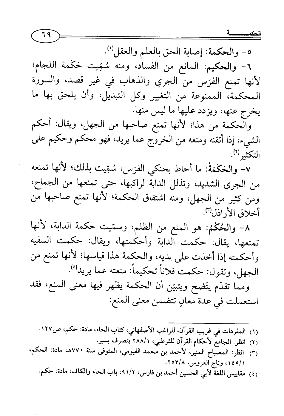 (¬1) المفردات في غريب القرآن، للراغب الأصفهاني، كتاب الحاء، مادة: حكم، ص127.