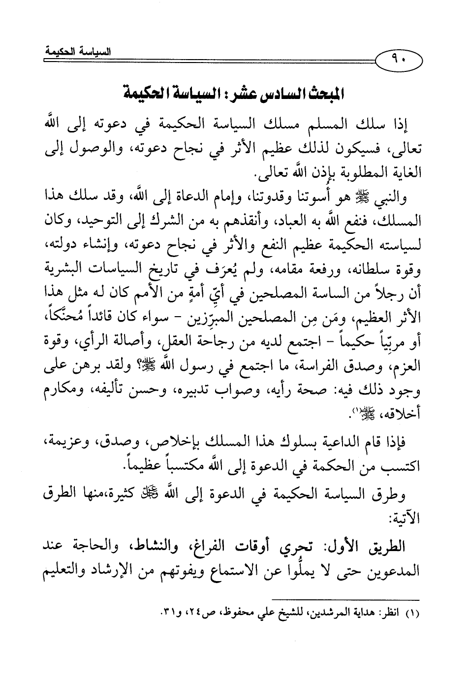 المبحث السادس عشر: السياسة الحكيمة