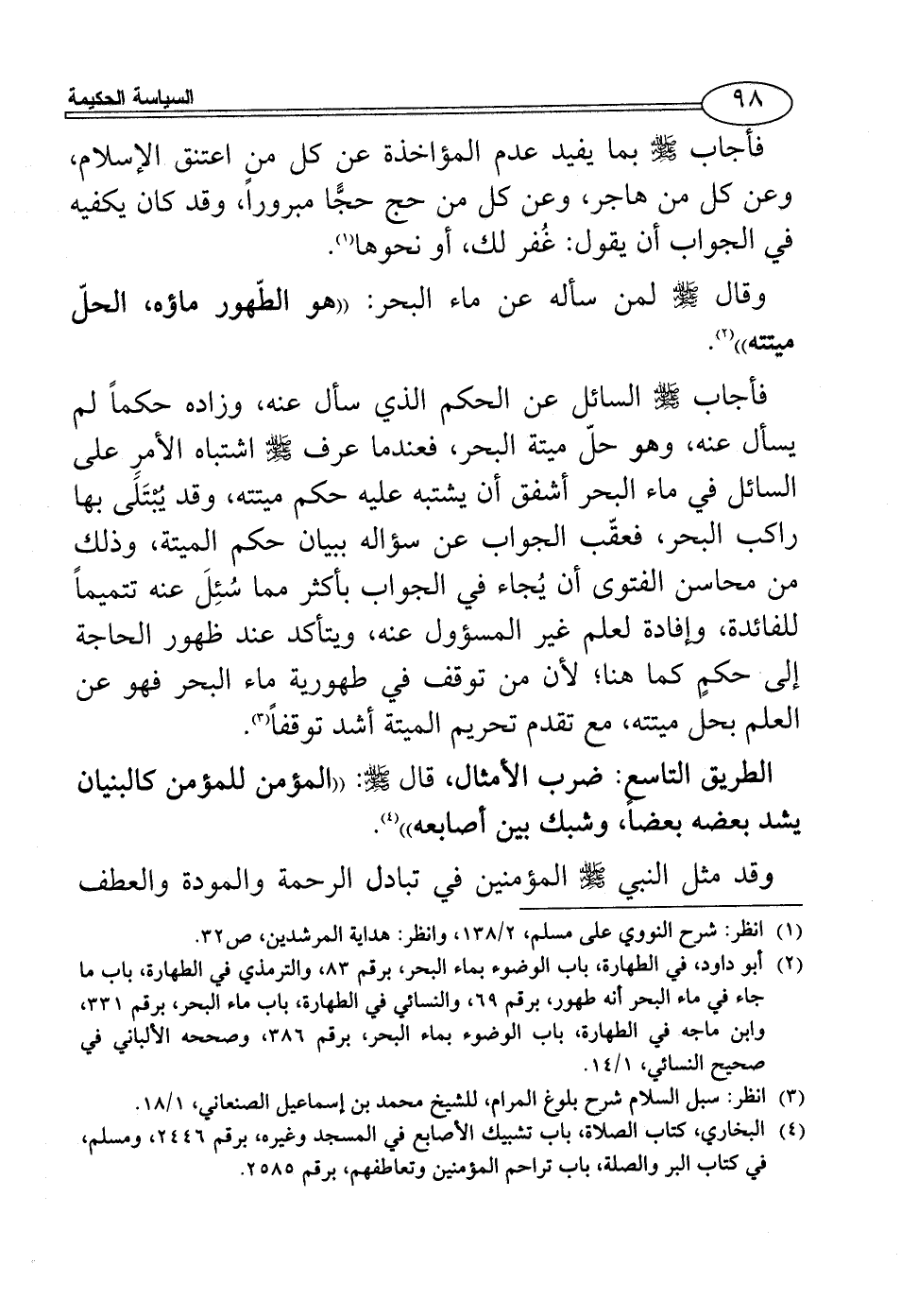 (¬4) البخاري، كتاب الصلاة، باب تشبيك الأصابع في المسجد وغيره، برقم 2446، ومسلم، في كتاب البر والصلة، باب تراحم المؤمنين وتعاطفهم، برقم 2585.