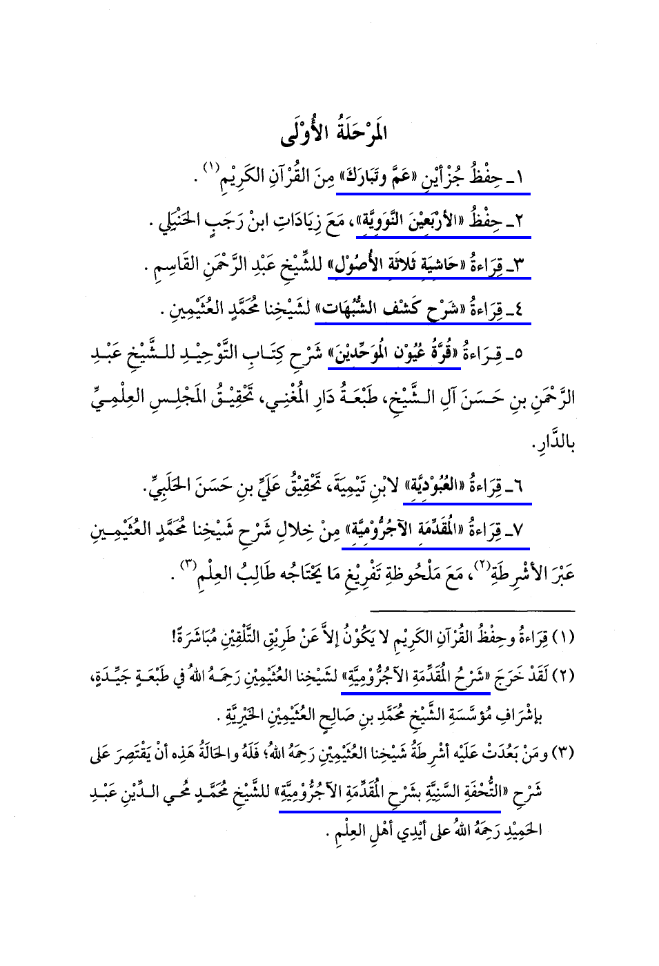 3 - قِرَاءةُ "حَاشِيَةِ ثَلَاثةِ الأُصُوْلِ" للشِّيخِ عَبْدِ الرَّحْمَنِ القَاسِمِ.