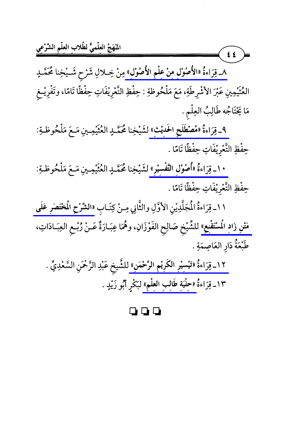 13 - قِرَاءةُ "حِلْيَةِ طَالِبِ العِلْمِ" لبَكْرٍ أَبُو زيدٍ.