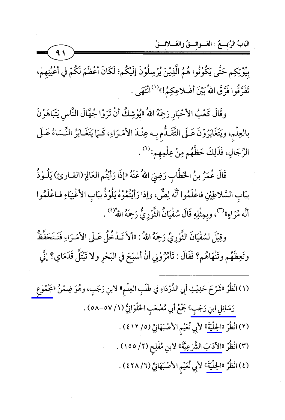 (¬1) انْظُرْ "شَرْحَ حَدِيثِ أبِي الدَّرْدَاءِ في طَلَبِ العِلْمِ" لابنِ رَجَبٍ، وهُوَ ضِمْنُ "مَجْمُوْعِ رَسَائِلِ ابنِ رَجَبٍ" جَمْعُ أبي مُصْعَبٍ الحَلْوَانِيُّ (1/ 57 - 58).