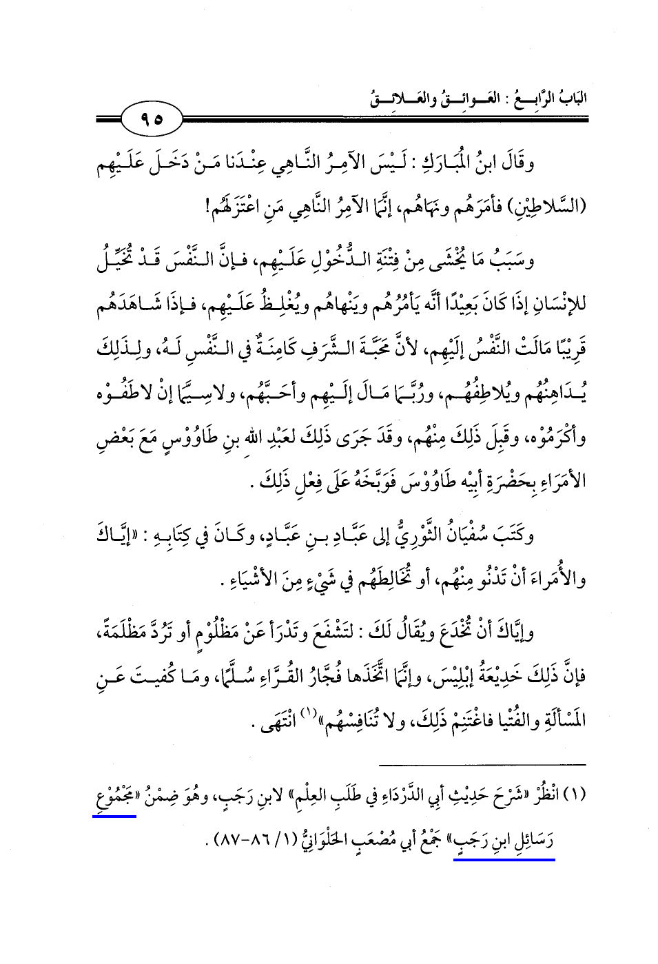 (¬1) انْظُرْ "شَرْحَ حَدِيثِ أبِي الدَّرْدَاءِ في طَلَبِ العِلْمِ" لابنِ رَجَبٍ، وهُوَ ضِمْنُ "مَجْمُوْعِ رَسَائِلِ ابنِ رَجَبٍ" جَمْعُ أبي مُصْعَبٍ الحَلْوَانِيُّ (1/ 86 - 87).