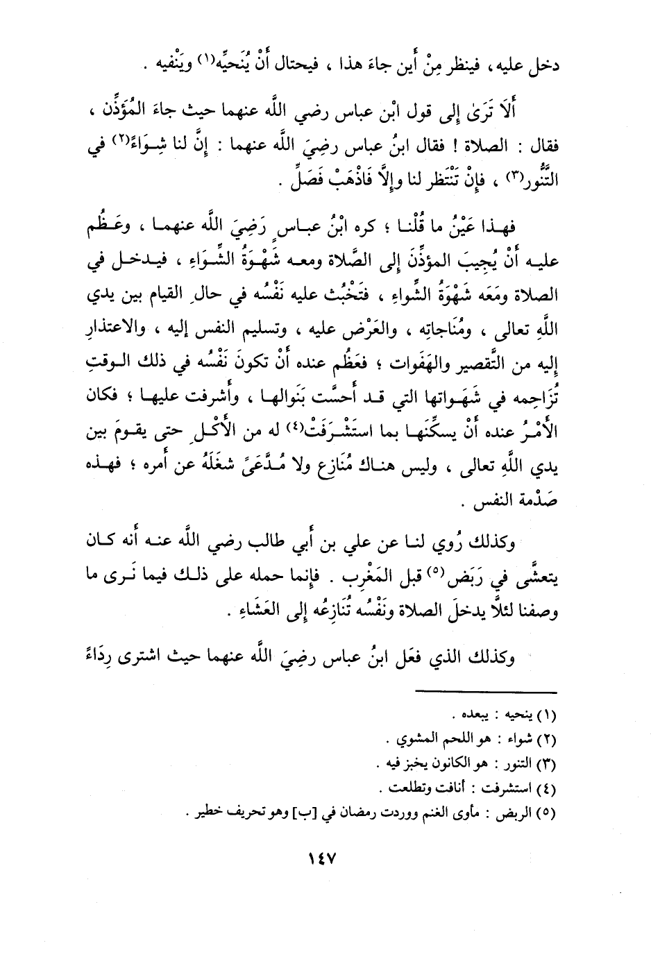 أَلا ترى إِلَى قَول ابْن عَبَّاس رَضِي الله عَنْهُمَا حَيْثُ جَاءَ الْمُؤَذّن فَقَالَ الصَّلَاة فَقَالَ ابْن عَبَّاس رَضِي الله عَنْهُمَا إِن لنا شواء فِي التَّنور فَإِن تنْتَظر لنا وَإِلَّا فَاذْهَبْ فصل