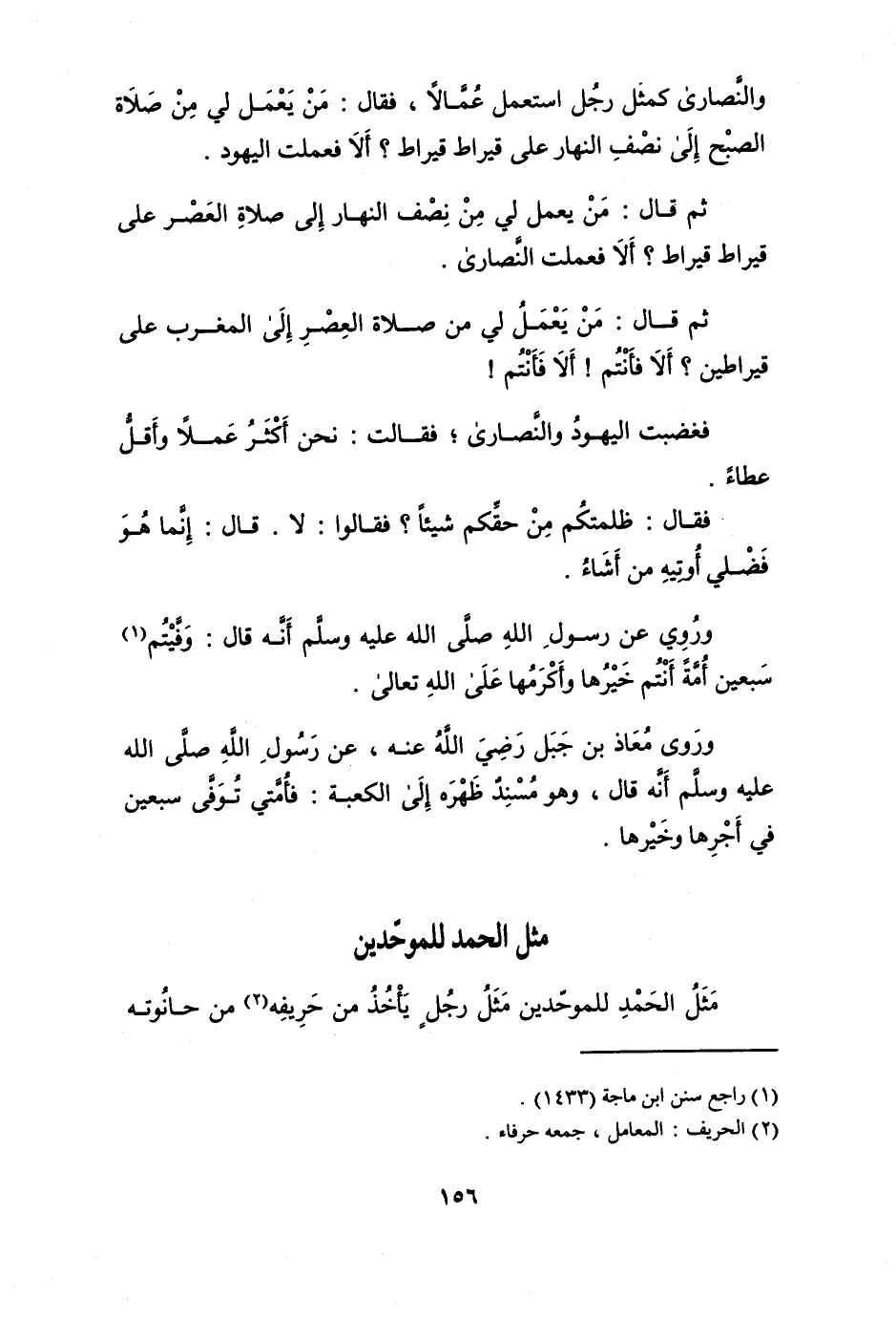 مثل الْحَمد للموحدين مثل رجل يَأْخُذ من حريفه من حانوته
