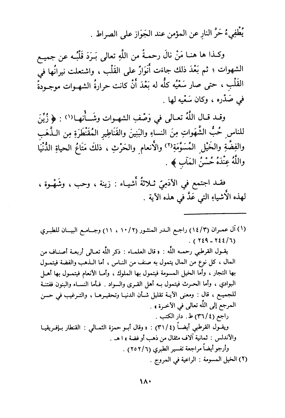 وَقد قَالَ الله تَعَالَى فِي وصف الشَّهَوَات وشأنها {زين للنَّاس حب الشَّهَوَات من النِّسَاء والبنين والقناطير المقنطرة من الذَّهَب وَالْفِضَّة وَالْخَيْل المسومة والأنعام والحرث ذَلِك مَتَاع الْحَيَاة الدُّنْيَا وَالله عِنْده حسن المآب}